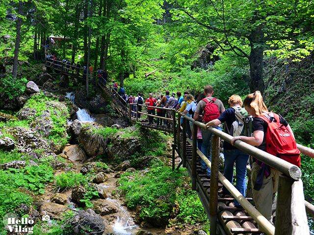 Az utazást követően egy közepesen meredek úton sétálva közelítjük meg a szurdok bejáratát, ahol a belépők megvásárlása után elindulunk, hogy a 2900 lépcsőfokot, 170 pallót és létrát “meghódítsuk”. Ezek a döbbenetes számok nem jelentenek leküzdhetetlen akadályokat, közel 2 óra alatt szép, kényelmes tempóban feljuthatunk Ausztria egyik legszebb szurdokának a tetejére. A túra alatt végig meseszép vízesésekben, zúgókban és sziklafalakban gyönyörködhetünk. A Medve-szurdok az egyik leghosszabb vízeséses szurdok Európában.