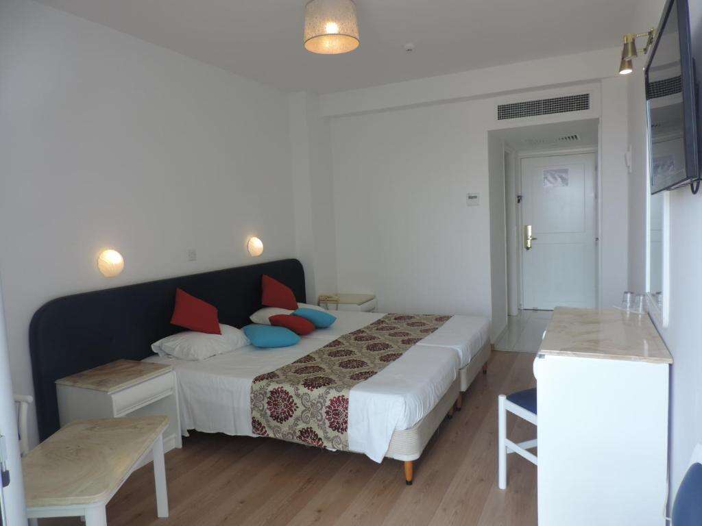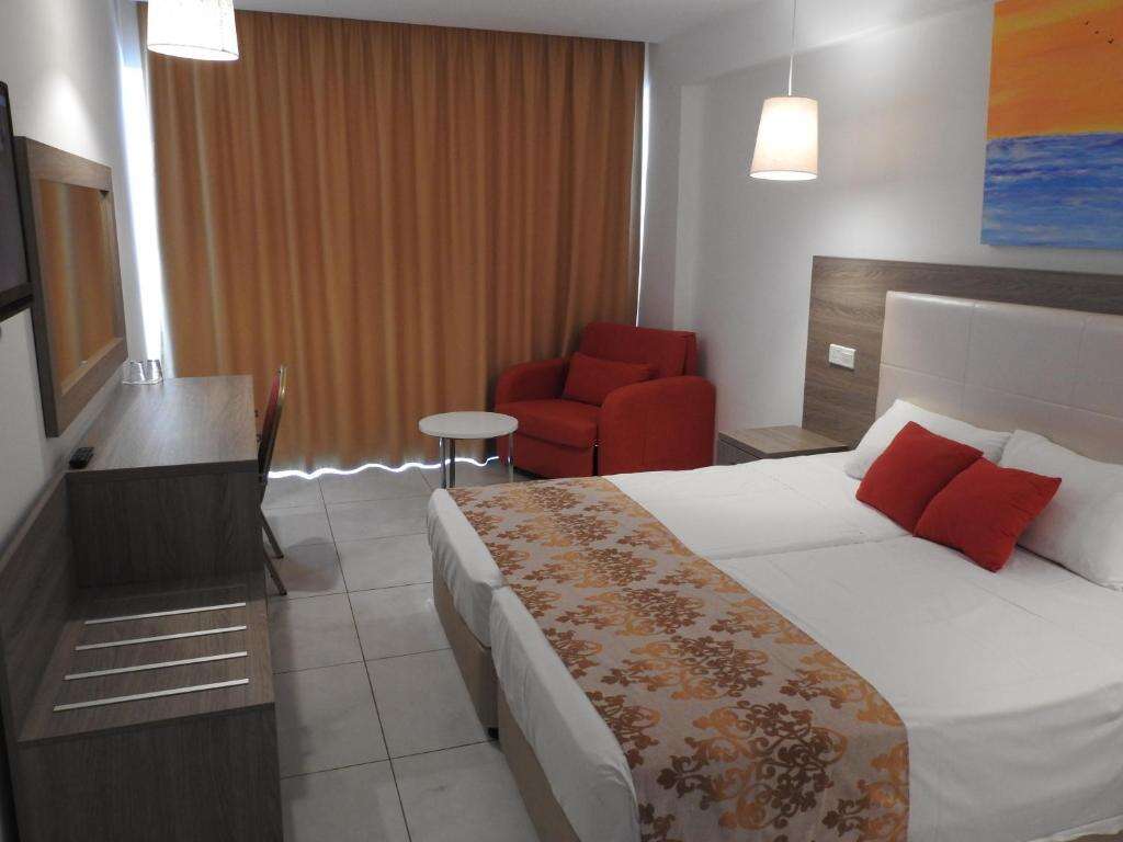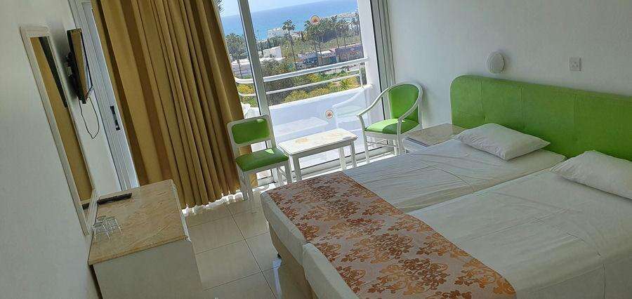 Fekvése: a nemrégiben felújított Corfu Hotel, Ayia Napa egyik legkedveltebb, panorámás részén helyezkedik el, mindössze kb. 500 méterre a csodálatos, aranyhomokos strandtól és kb. 5–10 perces sétára a város központjától, ahol számtalan étterem, bár, üzlet és szórakozási lehetőség várja a látogatókat. A szálloda domboldalon, a Földközi-tengerre néző, pálmafákkal szegélyezett úton található, így a legtöbb szobából lenyűgöző kilátás nyílik a tengerre és Ayia Napa híres öbleire. A Thalassa Tengerészeti Múzeum, a Régi Kolostor, a szoborpark és a kikötő szintén rövid sétával elérhetők, így a vendégek egyszerre élvezhetik a tengerpart nyugalmát és a városi élet pezsgését. Buszmegálló a közelben található, így a környék strandjai – például a híres Nissi Beach – is könnyen megközelíthetők. A szálloda elhelyezkedése ideális mind pihenéshez, mind aktív felfedezéshez, modern szobái, figyelmes személyzete és az Ayia Napa-öbölre nyíló kilátás miatt a Corfu Hotel az egyik legjobb ár-érték arányú választás a környéken. Foglaljon most!