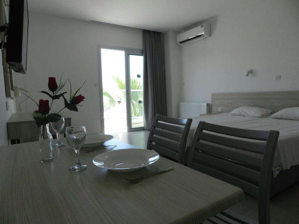 Étkezés: Önellátás, a szobák jól felszerelt konyhasarokkal rendelkeznek. Felár ellenében kontinentális reggeli vagy félpanzió (reggeli és menüvacsora) is foglalható. A környéken számos hangulatos ciprusi taverna és nemzetközi étterem kínál változatos gasztronómiai élményt.