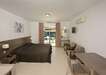 stúdió modern és letisztult stílusban felújított,tágas, kb. 26–28 m²-es szobák két fő számára ideálisak, légkondicionált, fürdőszobával, síkképernyős tv-vel, hajszárítóval és jól felszerelt konyhasarokkal rendelkeznek (főzőlap, hűtőszekrény, vízforraló, étkezőrész). Szobaszéf térítés ellenében bérelhető. Minden szobához erkély vagy terasz tartozik, kilátással a szárazföldre vagy a városra. Az