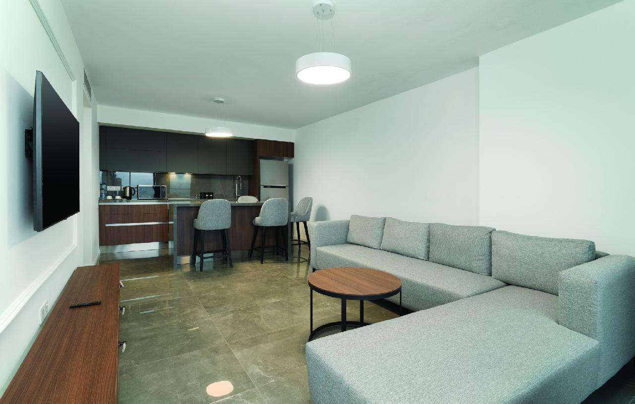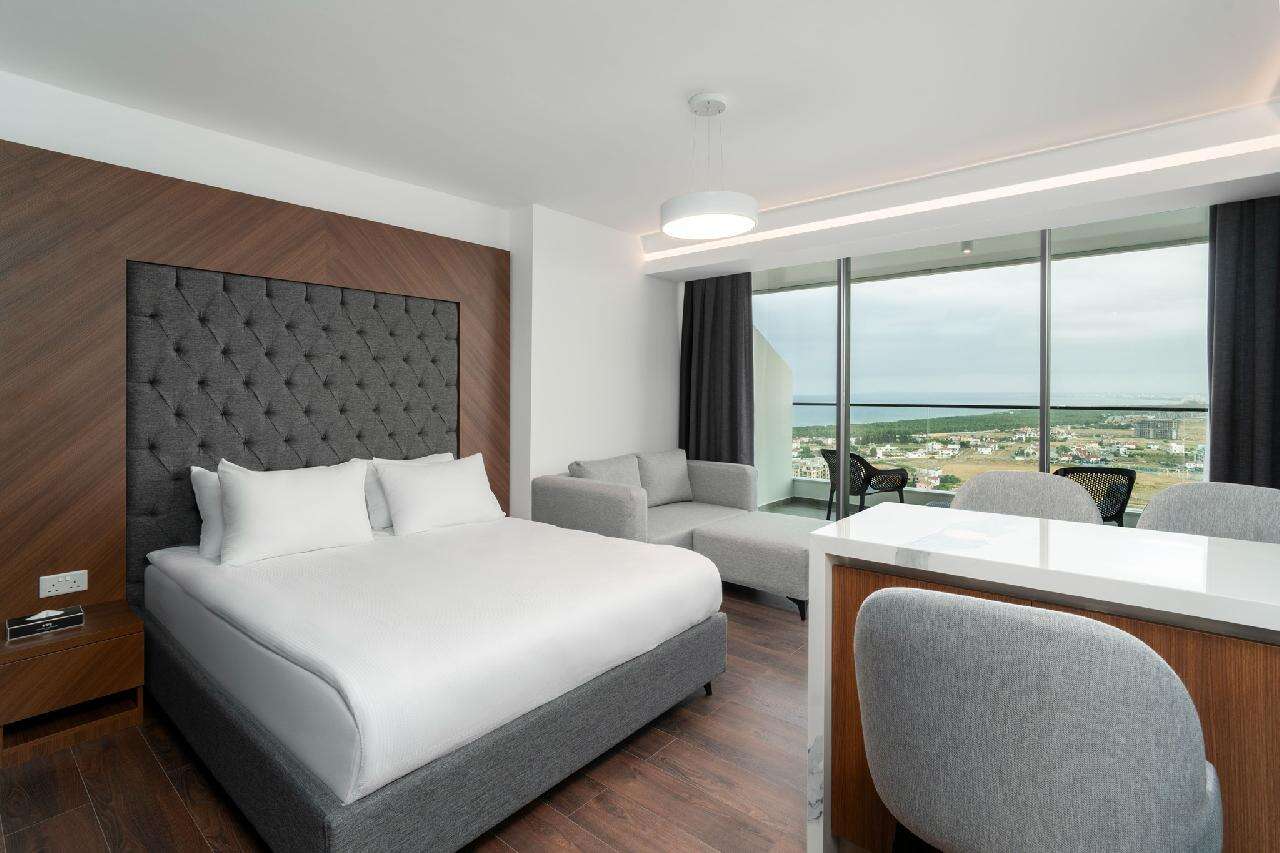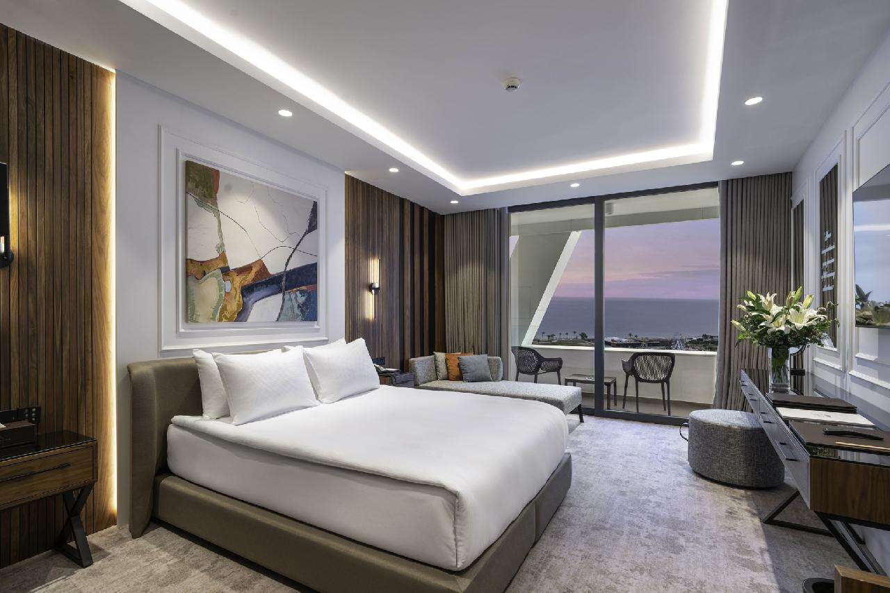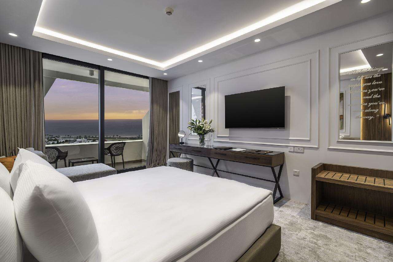 Szobák: minden stúdió és családi szoba a resort épület blokkban található, míg a szuperior szobák elhelyezkedése a központi toronyépületben. Mindegyik szoba modern, letisztult dizájnnal, elegáns bútorzattal és minőségi anyaghasználattal készült, légkondicionált, fürdőszobával, piperecikkek, hajszárítóval, síkképernyős tv-vel, telefonnal, hűtővel vagy minibárral, kávé- és teakészítési lehetőséggel, vasalóval és szobaszéffel felszerelt. A szobákhoz erkély vagy terasz tartozik szárazföldre, medencére vagy tengerre néző kilátással.