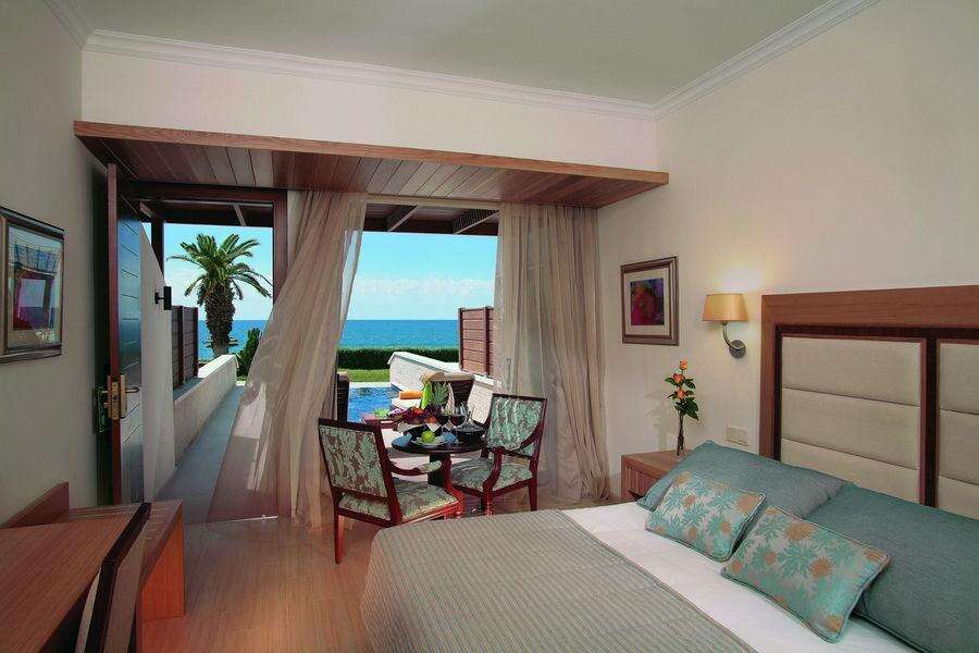 • Tengerre néző deluxe szoba: panorámás kilátással a Földközi-tengerre, amely naplementekor különösen romantikus hangulatot nyújt.