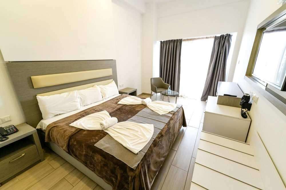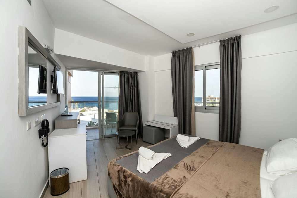 Szobák: minden szoba modern és tágas kialakítású (~25m2), praktikusan berendezett, fürdőszobás, légkondicionálóval, hajszárítóval, síkképernyős tv-vel, vízforralóval, szobaszéffel, hűtővel és telefonnal felszerelt. A szobához erkély tartozik melyek az utcára, medencére vagy a tengerre nézhetnek.