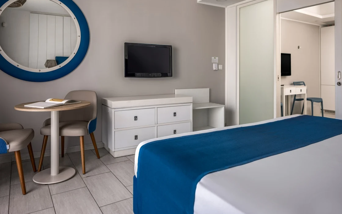 Szobák: minden standard szoba (ˇ24m 2) egyhálószobás, szépen berendezett, fürdőszobás, légkondicionálóval, hajszárítóval, LCD tv-vel, minibárral, telefonnal, WiFi internetkapcsolattal (térítésmentes), vízforralóval (kávé és teakészítési lehetőség) és szobaszéffel felszerelt. A családi szobák felszereltségben megegyeznek a standard szállodai szobákkal, nagyobb alapterületűek (kb.40m2), paravánfallal (tolóajtó) elválasztható két hálórésszel (két-két ággyal) rendelkezik. A szobákhoz erkély vagy terasz tartozik, melyek a környező domboldalra, a medencére, vagy a tengerre nézhetnek. A négyágyas szobák ugyanezzel a felszereléssel rendelkeznek mint a standard szobák, de nagyobbak (kb. 36m2) és maximum 4 fő elszállására alkalmasak.