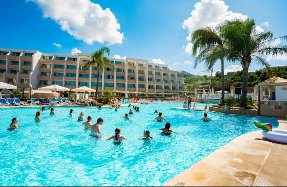 egyedülálló fekvéssel, Mellieha (Ghadira) Bay-ben, Málta legnépszerűbb és leghosszabb, lassan mélyülő homokos strandjánál található. Modern újépítésű, több mint 530 szobás, all inclusive szálloda és üdülőközpont, mely a homokos strandtól 50 méterre (attól csak egy autóút választja el) fekszik.