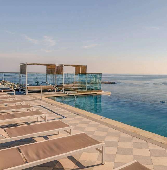 2023-ban felújított 600 szobával rendelkező, elegáns kialakítású, modern, rendkívül népszerű AX Odycy strandhotel ideális helyen, a tengerparti út mentén épült, szemben a kristálytiszta tengerrel, kilátással a Salina Bayre.