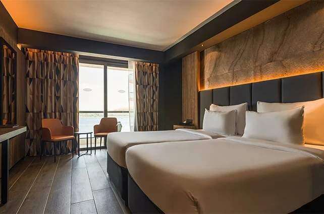 Szobák: minden komfort szoba szépen berendezett, egy hálószobás (~20 m2), légkondicionálóval (központilag vezérelt), fürdőszobával, hajszárítóval, síkképernyős tv-vel, vízforralóval és telefonnal felszerelt. Minibár térítés ellenében. A deluxe szobák berendezése elegánsabb, a szobák elhelyezkedése előnyösebb (felsőbb emeleteken). A szobákhoz erkély, balkon tartozik, szárazföldre vagy tengerre néző kilátással. A szálloda mozgáskorlátozott vendégek számára kerekesszékkel használható liftet, részben kerekesszékkel használható fürdőszobákat és akadálymentes hozzáférést biztosít a közösségi terekhez.