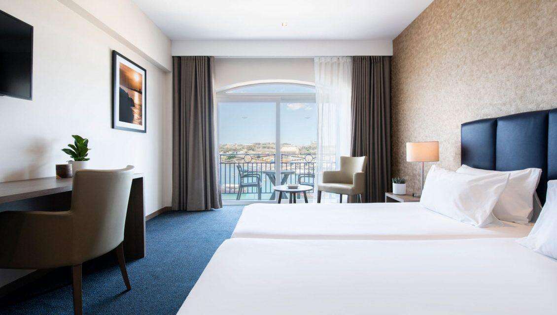 Szoba: Szuperior tengerre néző szoba: Tágas erkélyes modern szobák Málta egyik legcsodálatosabb panorámájával büszkélkedhetnek.