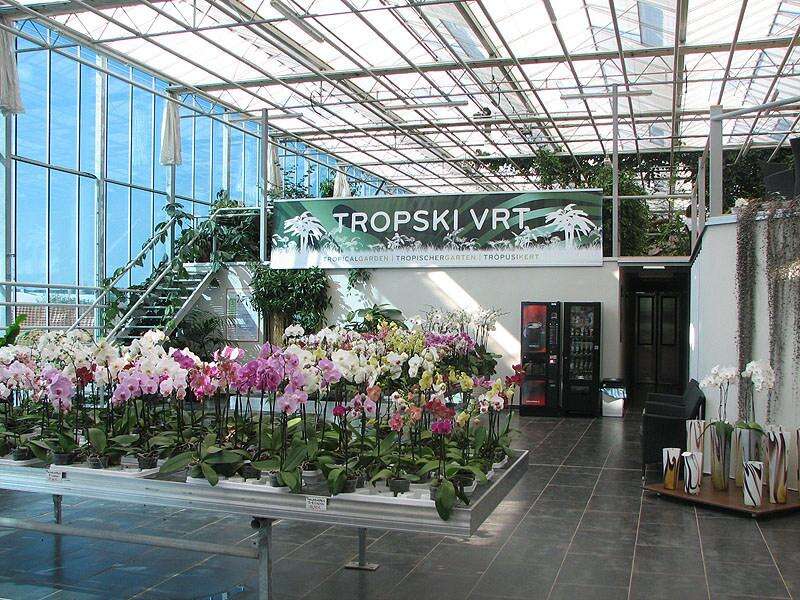 Utunk első állomása Közép Európa egyetlen Trópusi Kert és Orchideafarmja. A 40 000 m2–es, egyre bővülő üvegházban vezetett túrán felfedezzük a hatalmas trópusi kertet számos trópusi növénnyel, a különleges virágokat, mediterrán növényeket, gyönyörködhetünk egyéb trópusi gyümölcsökben, fűszernövényekben. Itt termelik Szlovéniában először a nagyon értékes vaníliát.